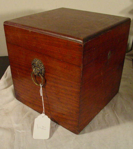 Sold19th c. Liquor Cabinet19th c. mahogany case liquor cabinet with (5) bottles with stoppers. 10 3/4" x 7 1/2" x 8 3/4" Ht..See Sold Price