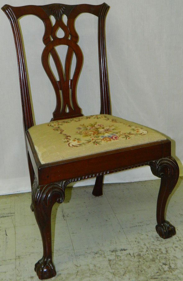 19th c. mahog. Chippendale side chair.