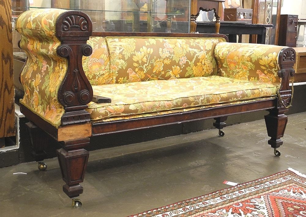 A Late Classical Figured and Carved Mahogany Sofa, New York or Philadelphia, c. 1840-1850Mar 15, 2026ANTIQUE VICTORIAN MAHOGANY SETTEE4 days LeftAntique Victorian Mahogany Settee Loveseat with New Upholstery567 Lots Away19th Century Russian Neoclassical Flame Mahogany Sofa Mid-Century CraftsmanshipMar 15, 2026Antique French Louis XVI style carved walnut settee or sofa and featuring ornate decorative tapestry22 hrs LeftA small upholstered country house sofa, second half of the 19th century,Chippendale Style Vintage Hand Carved Mahogany Sofa20 hrs Left20th C. Neoclassical Style Upholstered Sofa23 hrs LeftLouis XV style relief carved oversized sofa in mahogany21 hrs LeftA GEORGE III MAHOGANY AND UPHOLSTERED SETTEE, CIRCA 1780Mar 25, 2026French Empire Mahogany Daybed Sofa21 hrs LeftCarlton Mcclendon Victorian Reproduction, Solid Mahogany SofaMar 16, 2026EMPIRE SOFAMar 14, 2026Vintage English Mahogany Queen Anne Style Settee with InlayMar 17, 2026Regency Mohair Upholstered Mahogany SofaApr 07, 2026Camel Back Sofa, Carved Mahogany Frame with 5 Legs, 38"h x 75"w x 23"d (upholstery fair condition)4 days Left
