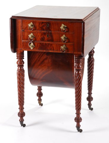 19th c Empire 3 drawer sewing table.Apr 24, 202619th c Empire Two Drawer Work TableApr 24, 2026An English George III mahogany veneered one-drawer serving or side table, 19th C.Apr 25, 2026Federal Style Inlaid One-Drawer Work TableMay 02, 2026Regency Ebony Inlaid Mahogany Sewing Stand4 days LeftNew York Classical Figured Mahogany Two-Drawer Work TableMay 02, 2026American Late Classical Figured Mahogany Dressing Chest4 days LeftTheodore Alexander Sheraton Mahogany Sewing Table with Inlay and Brass Feet6 days LeftEdwards & Roberts Empire Style Mahogany Cylinder DeskMay 02, 2026Antique Sheraton Flame Mahogany Drop-Leaf Sewing Stand C18304 days LeftAntique Sheraton Flame Mahogany Drop-Leaf Sewing Stand C18301 day LeftRegency Mahogany Pembroke Table c.1830English Mahogany 18/19th c. Drop Leaf Table, Single Drawer One End & Faux Drawer Opposite End, FanApr 21, 2026Queen Anne-Style Carved Mahogany Silver Table4 days LeftA 19TH CENTURY MAHOGANY WORK TABLE POSSIBLY RUSSIAN WITH CARVED CARYATID SUPPORTS3 days LeftTHREE DRAWER MAHOGANY DRESSER ON SPLAY LEGS WITH BRASS HARDWARE C 1955.2 days Left