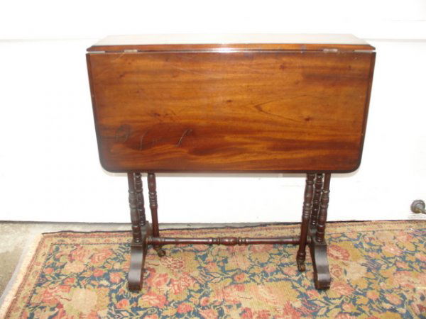 19TH C. MAHOGANY TUCK-AWAY TABLE, HAVING TURNED DBL