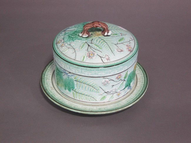 19TH C. MAJOLICA CHEESE BELL