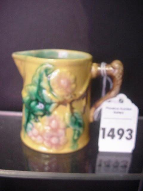 19th C Majolica Flowered Creamer