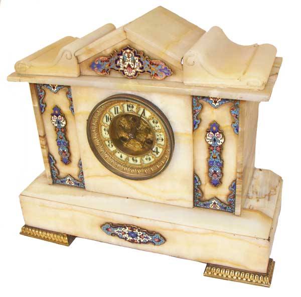 19th C. marble & cloisonne mantle clock