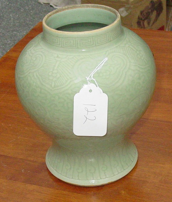 Sold19th C. CHINESE CELEDON VASE NOW A LAMP19th CENTURY CHINESE CELEDON VASE NOW A LAMP. Height: 32 in. by Width: 17 in. by Depth: 5 in.See Sold Price