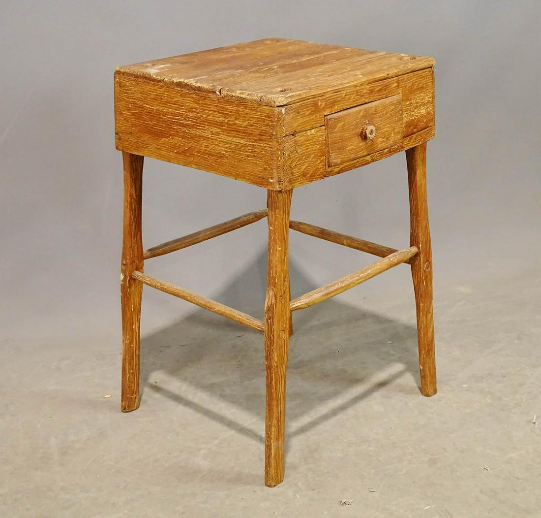 Sold19th C. AMERICAN PAINTED CHERRY ONE DRAWER STANDSquare overhanging top, over square tapering legs, single drawer h. 26-1/2 w. 18 d. 17-1/2 in. Provenance: By descent through the family of an important South Salem, NY collectorSee Sold Price