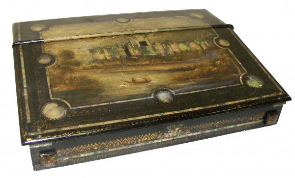 19th C. papier mache laquered lap desk