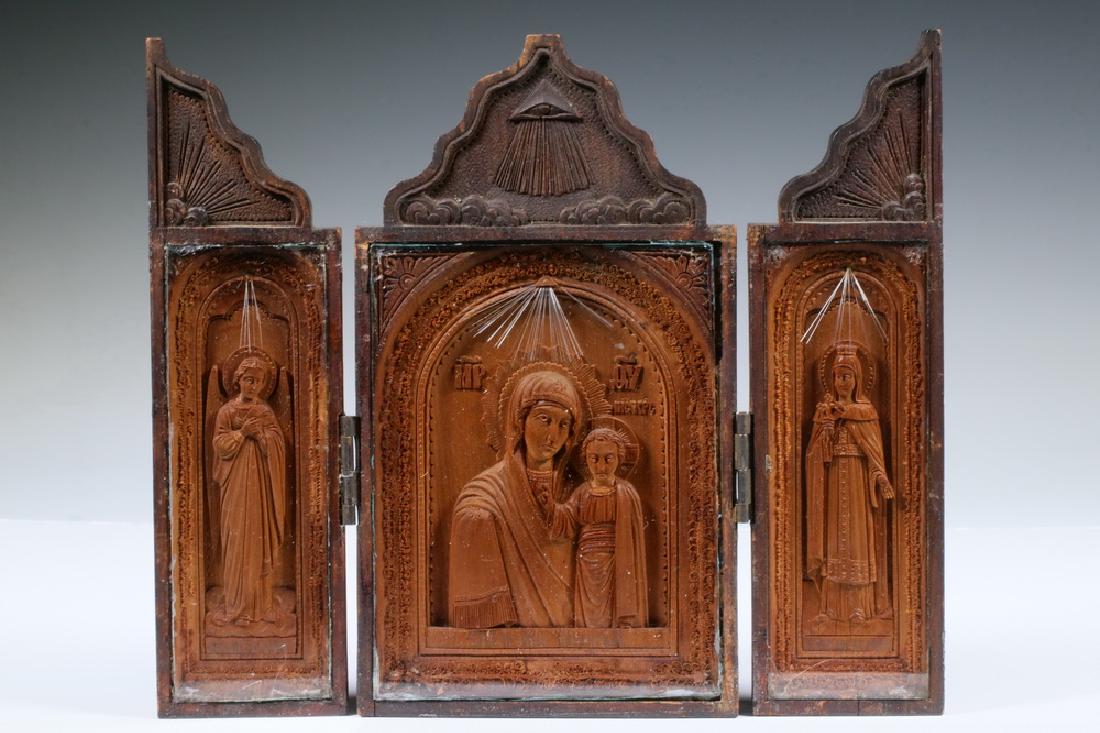 19TH C. RUSSIAN CARVED WOOD TRIPTYCH