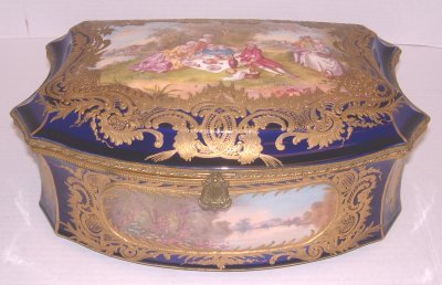 19TH C. SEVRES SIGNED PAINT DECORATED COBALT BOX