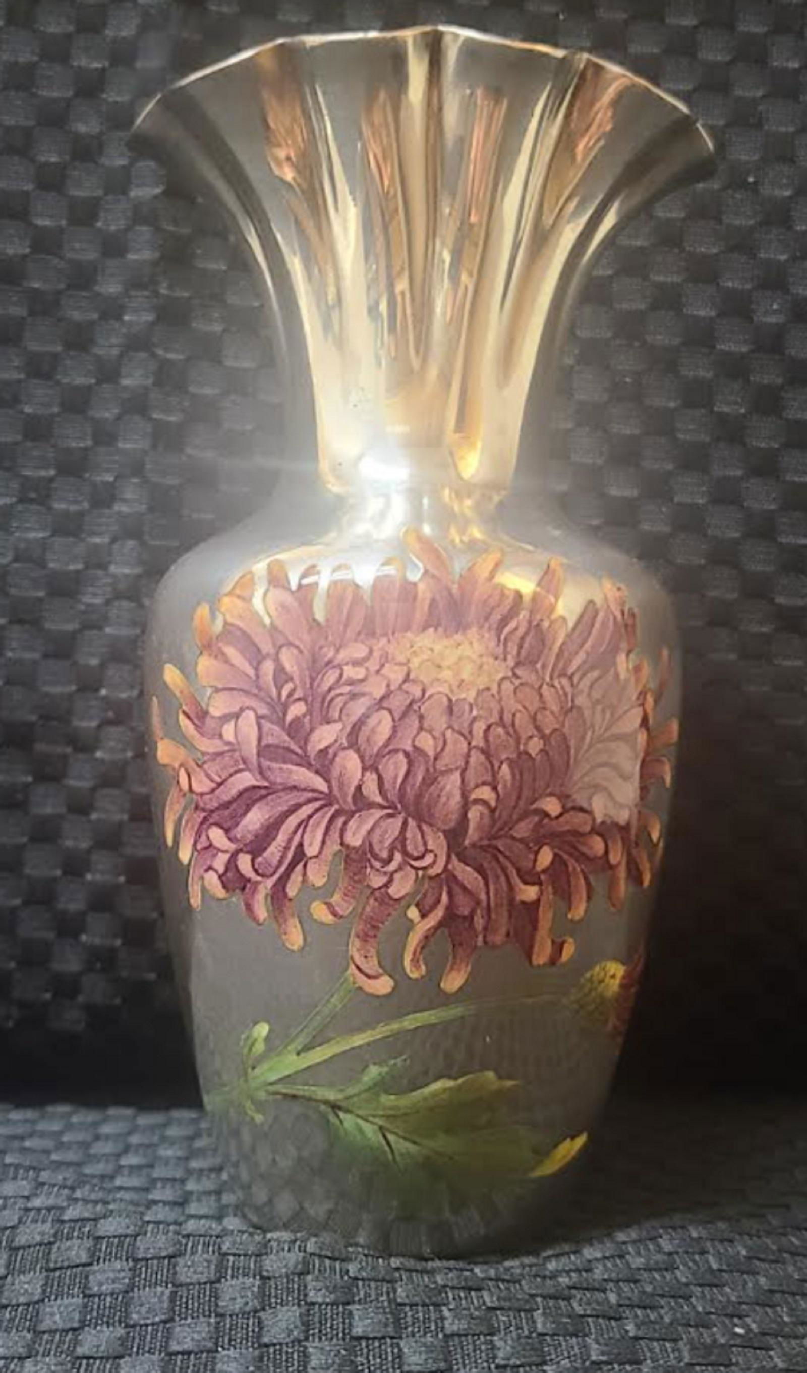 19th C SHIEBLER STERLING & ENAMEL FLOWER VASE