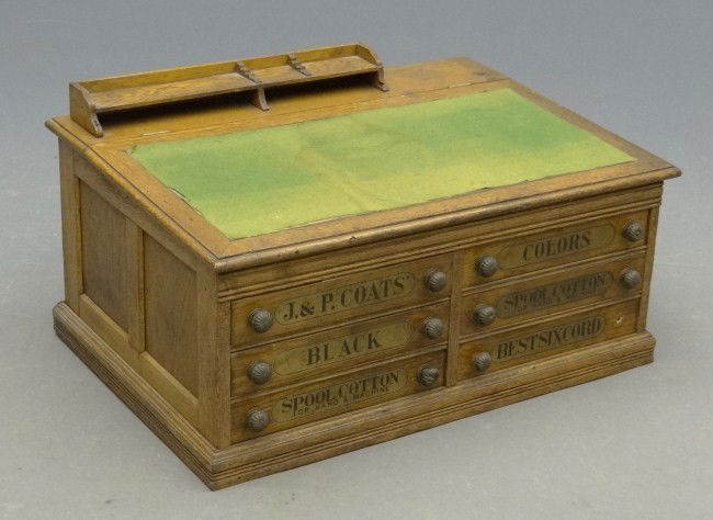 Sold19th c. Spool Cabinet19th c. J & P Coates spool cabinet. 24 1/2" x 17 1/2" x 20 1/2".See Sold Price