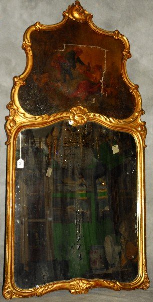 ANTIQUE FRENCH GILT AND PAINTED TRUMEAU MIRROR