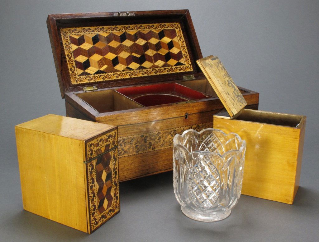 English Wooden Boxes8 hrs LeftAntique lap desk, Chinese lacquer jewelry box, and more boxes1 day Left19th Century Tea Caddy & Other BoxesMar 07, 20262 English 19th Century Tea CaddiesMar 04, 202619TH C. SATIN WOOD TEA CADDY.7 hrs LeftVictorian Style Wooden Tea Caddy Chest Box3 days LeftLARGE SCOTTISH TEA CADDY ROSEWOOD & SATINWOOD WITH SARCOPHAGUS FORM3 days LeftCollection Antique English Desk Top Valuables Boxes3 days LeftEnglish Brass Bound Mahogany Campaign Apothecary BoxMar 16, 2026English Wooden Vanity Box8 hrs LeftTunbridge Inlaid BoxMar 07, 2026Brass Bound Dovetailed Mahogany Traveling Desk Box with Three Hidden Drawers, 19th Century3 days LeftA mahogany travelling medicine box, 20th century,Cave à liqueur (Travel Bar)Mar 27, 2026Two English Victorian Tea Caddies4 days LeftEnglish Mahogany Tea Caddy Box with Woman's Vanity ItemsMar 28, 2026