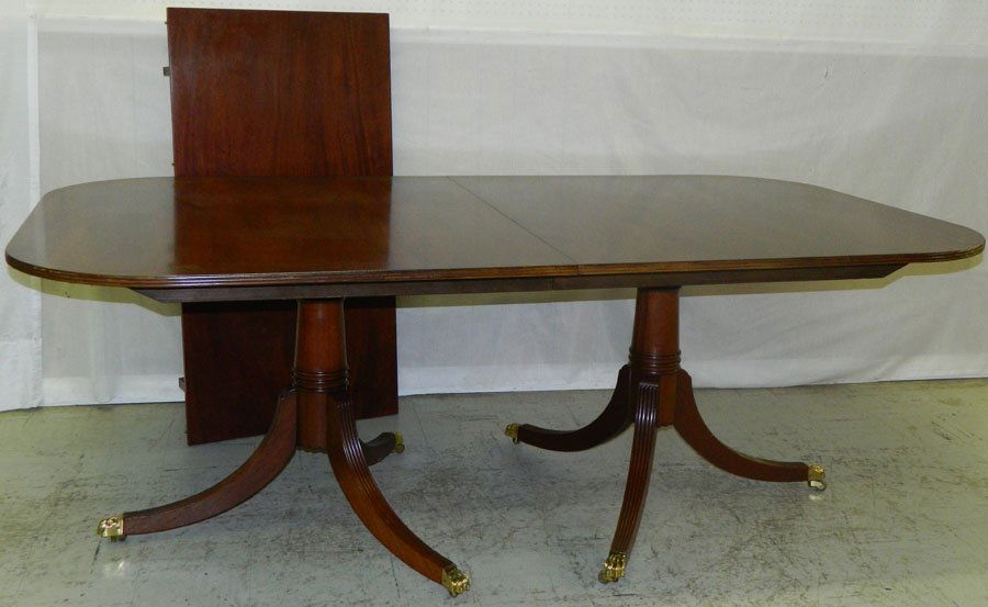 A George III Style Brass Inlaid Mahogany Dining Table Chippendale Style Mahogany Three Pedestal Dining Table, 2 Leaves 20th Cent., H 30" W 48" L 113.5"5 days LeftChippendale Style Mahogany Two Pedestal Dining Table, 2 Leaves 20th Cent., H 30" W 44" L 76"5 days LeftREGENCY PEDESTAL DINING TABLE & 2 LEAVES, C. 1810Mar 25, 2026Regency-Style Mahogany Dining TableMar 29, 2026GEORGIAN STYLE MAHOGANY PEDESTAL DINING TABLEMar 25, 2026Mahogany Dining Table with Double Pedestal and Ball Claw Feet Model 2208Mar 22, 2026PLUM PUDDING MAHOGANY LOUIS XVI STYLE BRONZE MOUNTED DINING TABLE WITH TWO LEAVES IN THE MANNERMar 24, 2026MAHOGANY LOUIS XVI STYLE BRONZE MOUNTED AND INLAID DINING TABLE HAVING A BEAUTIFUL BOOKMATCHEDMar 24, 2026Kindel Empire Design Mahogany Dining Table with 2 Leaves6 days LeftLarry Crossman Handcrafted Mahogany Dining Table with Inlaid Border748 Lots AwayRegency-Style Mahogany Circular Dining TableMar 28, 2026Mahogany Double Pedestal Dining Table with Inlay and Ball Claw FeetMar 24, 2026RARE SOLID MAHOGANY TRIPLE PEDESTAL DINING TABLE BY HENKEL HARRIS HAVING EIGHT LEAVES EXTENDING THEMar 24, 2026ENGLISH REGENCY STYLE MAHOGANY PEDESTAL DINING TABLE7 days LeftBuckingham Collection Extendable Crotch Mahogany Veneer Dining Table Seats 10Mar 23, 2026