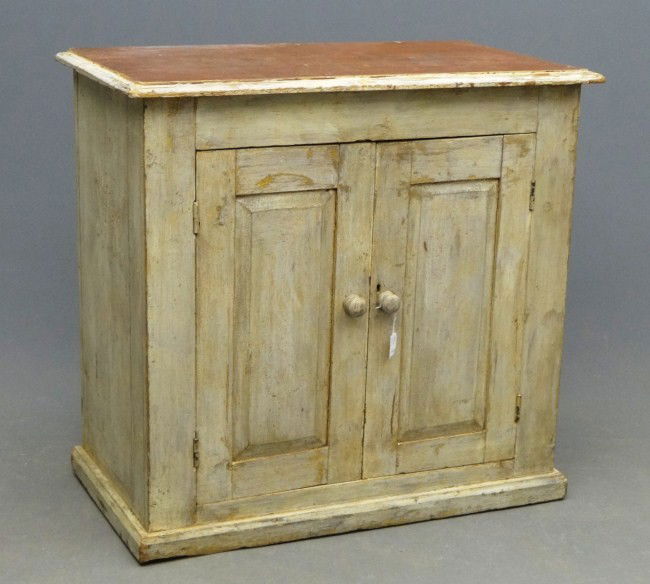 Sold19th c. Cupboard19th c. two door painted cupboard with bootjack cutout base. 41 1/2" x 23" x 50 1/4" Ht.. Provenance: Estate of Philip And Kathleen Seibel, Catskill New York.See Sold Price