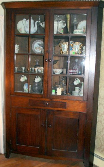 19TH C. WALNUT CORNER CABINET-OHIO ORIGIN, H 86"
