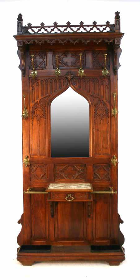 19th c Walnut Victorian Gothic Halltree