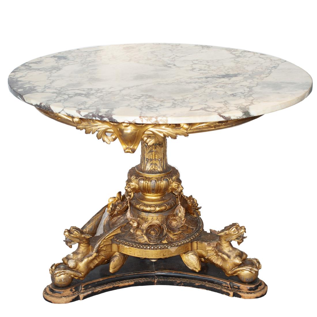 French Carved Walnut Marble Top Table, Ca. 1900, H 31" Dia. 20"Mar 19, 2026Fine Louis XVI Style Marble Top Ormlou Tripod Gueridon5 days LeftLouis XVI Style Giltwood & Marble Top Round Table5 days LeftFRENCH EMPIRE STYLE MARBLE TOP CONSOLE TABLE3 days LeftRegency Style Round Center Table Figural Mahogany Gold Gilt AccentsMar 20, 2026Baroque Revival Mirrored Pedestal Table with Gilt Cabriole Legs and Acanthus Detailing6 days LeftLarge Wrought Iron with Marble Top Console Table220 Lots AwayFrench Marble Top Carved Gilt Wood TableMar 22, 2026Vintage French Louis XIV Style Gilt Wood Marble Top Console Table584 Lots AwayItalian Parcel Gilt Bronze Pietra Dura Top CenterMar 22, 2026FRENCH CHINOISERIE GILT BRONZE & MARBLE GUERIDON3 days Left19th Century English Neoclassical Marble Top Library Table with Corinthian Columns3 days LeftFrench Louis XV Style Marble Top Gilt Center TableMar 22, 2026French Louis XVI Style Marble Top Bouillotte TableMar 22, 2026Chinese Hardwood and Marble Low Pedestal TableMar 26, 2026Napoleon III Period Bronze and Marble French Gueridon Table 1890Mar 16, 2026