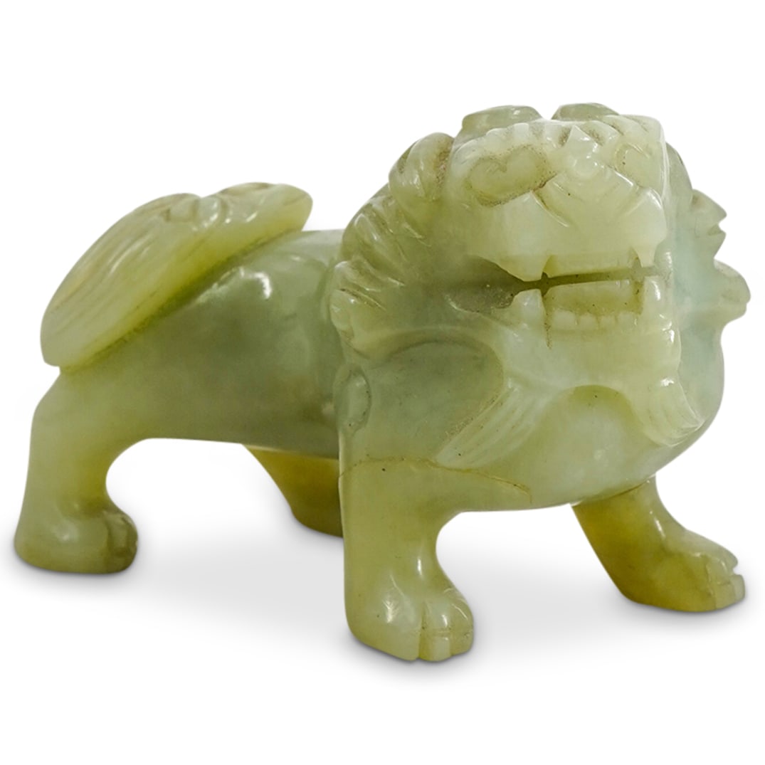 Vintage Rare Chinese Genuine Natural Green Jade Hand Carved Lion Statue