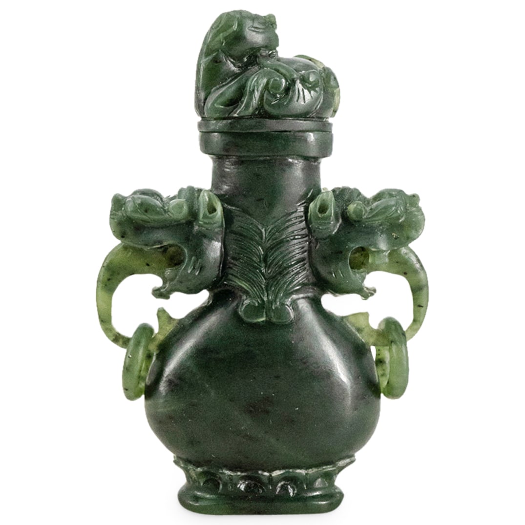 (2) CHINESE CARVED GREEN HARDSTONE COVERED CABINET VASES16 hrs LeftA Chinese Jade Lotus-Decorated Snuff Bottle, 20th Century, 19YA4 days LeftA Chinese Jade Snuff Bottle, Qing Dynasty, 18th-19th Century, 3FA2 days LeftA HETIAN SPINACH-GREEN JADE CARVED BEAST-MASK MOTIF COVERED VASE WITH DOUBLE ELEPHANT HANDLESMar 14, 2026Carved Bright Green Jade Dragon Pendant, 3 in.4 days LeftA CARVED SPINACH GREEN JADE VASE WITH COVERMar 01, 2026Chinese Carved Jade Snuff BottleFeb 28, 2026Chinese Carved Serpentine Jade Vase With CoverMar 28, 2026A Chinese Nephrite Jade Hu Lu Ornament, 20th Century, 19FB2 days LeftTall Chinese Export Covered Vase19 hrs LeftQing Dynasty Hetian Jade Elephant Ear Dragon Pattern BottleFeb 28, 2026Mid-20th Century Chinese Jade Vase with Lidded Top and Pierced Scroll Handles6 days LeftA ARCHAIC JADE BEAST-HANDLED BOTTLE WITH MOVABLE RING6 days LeftA Chinese Jadeite Jade Snake Amulet Pendant, 20th Century, 49YB2 days LeftHand Carved Chinese Cinnabar Style Snuff Bottle6 days LeftChinese Carved Jade Covered Hu VaseMay 07, 2026