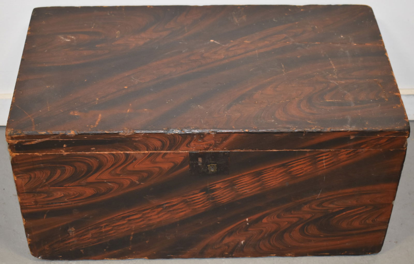 19TH CENT GRAIN PAINTED PINE FLAT TOP BOX