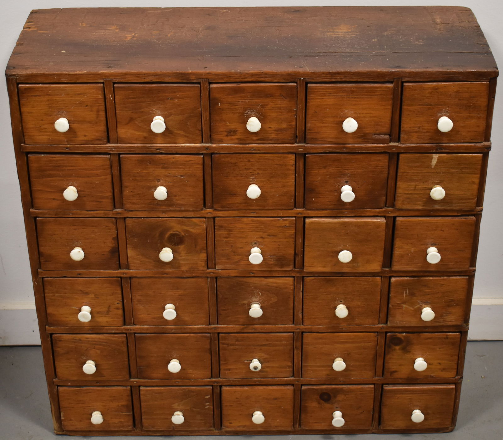 19TH CENT PINE 30 DRAWER APOTHECARY CABINET
