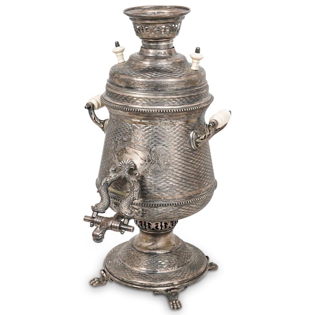 RUSSIAN 84 SILVER ENGRAVED SAMOVARMar 22, 2026ANTIQUE RUSSIAN BRASS SAMOVAR4 days LeftBatashev Brothers Tula Russian Imperial Samovar1 day Left19th Century Art Nouveau Silver Plated SamovarMar 28, 202619th Century Russian Brass Samovar4 days LeftAntique Brass Russian Samovar 19th Century With Stamps 5Antique Silver Plated SamovarImpressive Victorian Sterling Silver 'Armada' Ewer3 days LeftANTIQUE RUSSIAN SAMOVAR BY SHEMARIN BROTHERS 19TH C5 days LeftA Large Silver-Plated Samovar4 days LeftAntique Brass Samovar – 19th Century With StampsAntique 19thC American Silver Plate Classical Hot Water Urn Samovar w/Chased Canine Dog CrestMar 29, 2026Antique Brass Russian Samovar 19th Century With Stamps 10French Silver Coffee Pot, Pierre-Jean MeuriceMar 25, 2026Ottoman Empire Silver Spice Container, 19th C.Mar 19, 2026An American Silver Coffee Pot, John David, Philadelphia, Circa 1770Mar 19, 2026