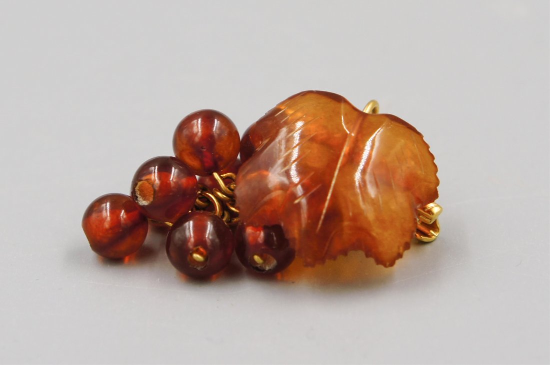 SoldHat button. China. 18th/19th century. Amber carved withHat button. China. 18th/19th century. Amber carved with a fish and aquatic plants. 2-1/4" x 1-1/2".See Sold Price