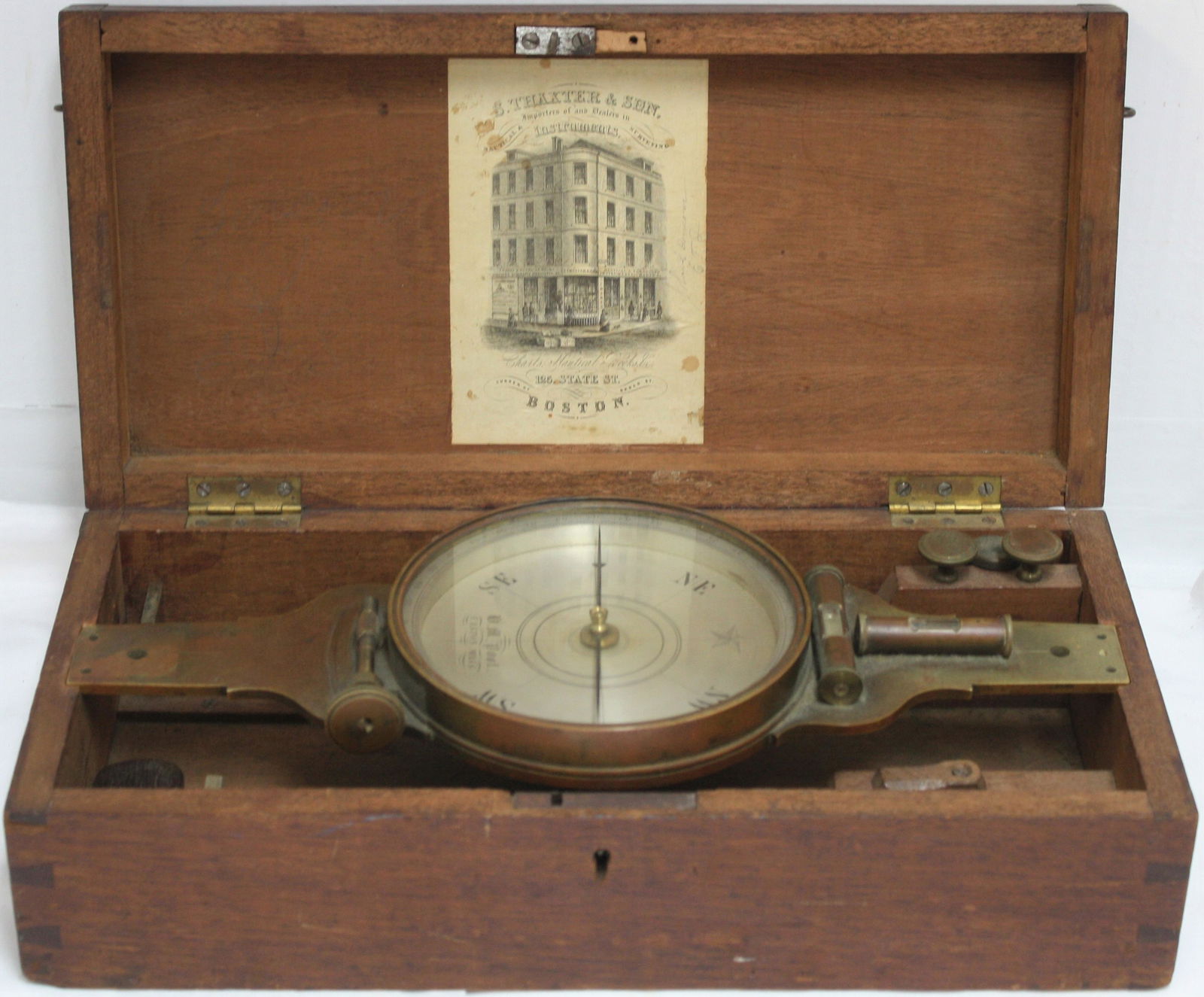 Zenith Chronometer Clock5 days LeftTurned Mahagony Wood Compass3 days LeftFrench set of brass compass 19th mahogany box.Turned Mahagony Wood Compass with Lid3 days LeftTurned Mahagony Wood and Silver Plated Bronze Sundial Compass3 days LeftANTIQUE HM POOL MA BRASS SURVEYORS COMPASS.3 days LeftCASED H.M. POOL BRASS SURVEYOR'S COMPASS Easton, Massachusetts, Mid-19th Century Case height 4.5".Mar 12, 2026CASED THOMAS JONES CLINOMETER/QUADRANT AND LEVEL England, Mid-19th Century Case height 2". WidthMar 12, 2026Antique J.D.Potter Brass Sextant InstrumentMar 10, 2026CASED LACQUERED BRASS AMSLER INTEGRATOR OR PLANIMETER Late 19th/Early 20th Century Case heightMar 12, 2026Henry Hughes & Son Bronze Sextant w/ CaseMar 10, 2026CASED R. ADIE BRASS EIDOGRAPH London, Late 19th Century Case height 4.25". Width 13.5". Depth 5.75".Mar 12, 2026CASED THOMAS JONES BRASS TRANSIT THEODOLITE London, Early 19th Century Barrel length 10.5". CaseMar 12, 20261942 Hamilton U.S. Navy Gimbaled Deck Watch6 days LeftCASED KEUFFEL & ESSER MECHANICAL AMSLER INTEGRATOR (PLANIMETER) Late 19th/Early 20th Century CaseMar 12, 2026CASED W. & S. JONES BRASS PANTOGRAPH London, Circa 1820 Case height 4". Width 21". Depth 5".Mar 12, 2026