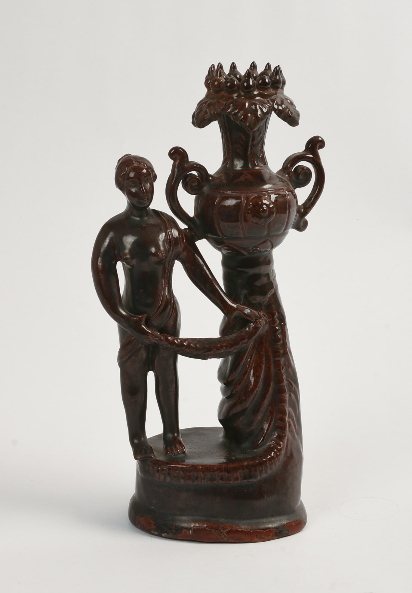 19TH CENTURY FIGURAL FORM REDWARE CANDLESTICK.