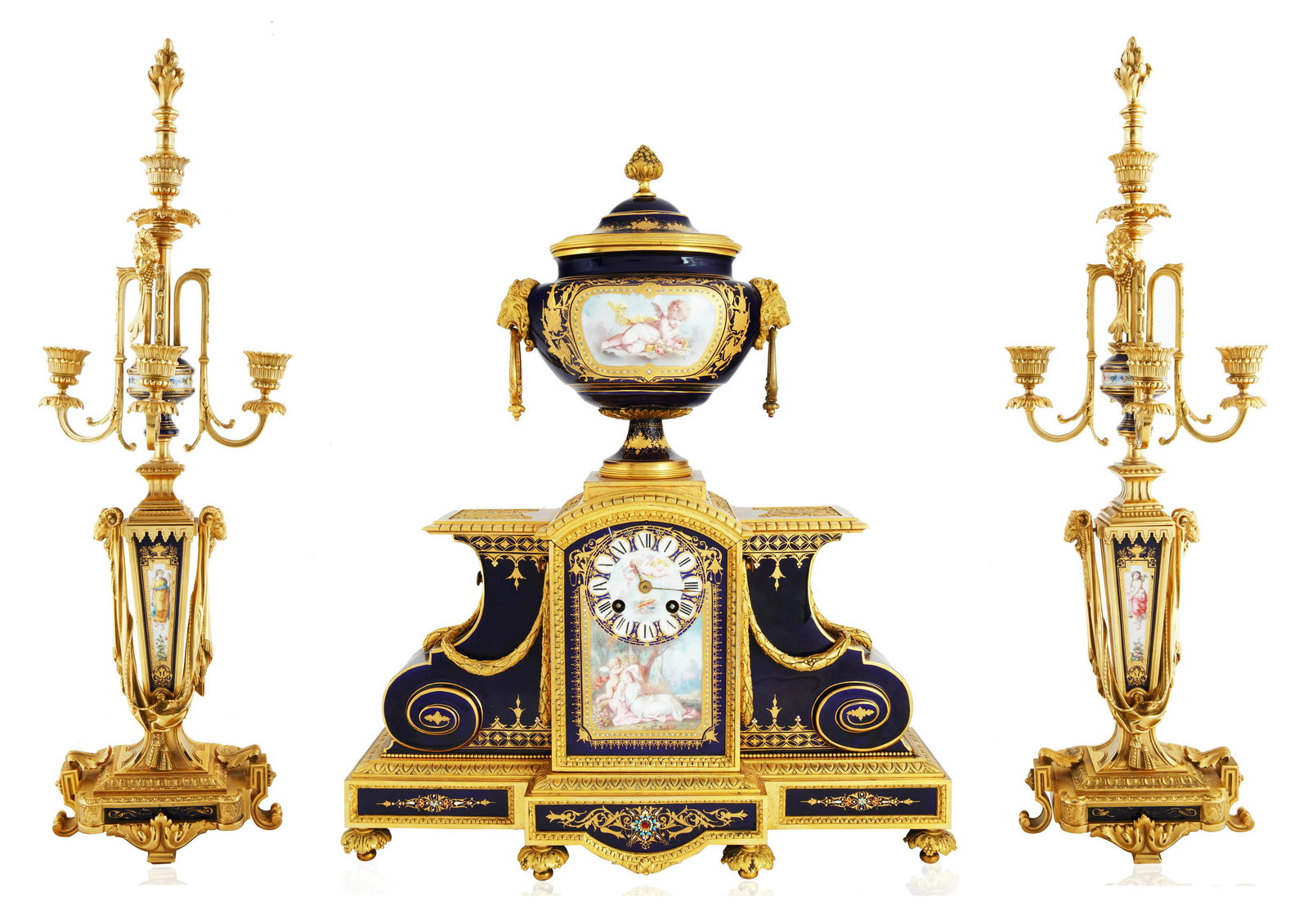 Antique French Sevres Porcelain & Dore Bronze Three Pcs Clock & Matching Candelabras SetBKG Antique Mall4.4(438)$2,0006 days Left