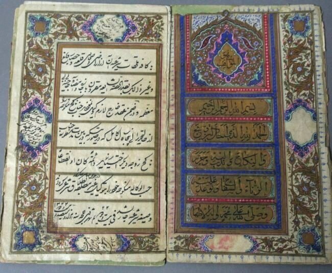 TWO PERSIAN MANUSCRIPT PAINTINGS 19th Century Gouaches on paper, 5.5" x 3" sight and 10" x 5" sight.TWO PERSIAN MANUSCRIPT PAINTINGS19th CenturyOne depicts two figures in a garden. The other depicts a goat and three figures on horseback in a hilly landscape.Gouaches on paper, 5.5" x 3" sight and 10"