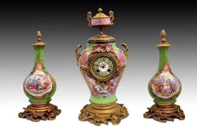 (3) SEVRES STYLE PORCELAIN & BRONZE MANTEL CLOCK & CANDELABRA GARNITURE SETAustin Auction Gallery4.7(1.2k)$300(1 bid)21 hrs Left