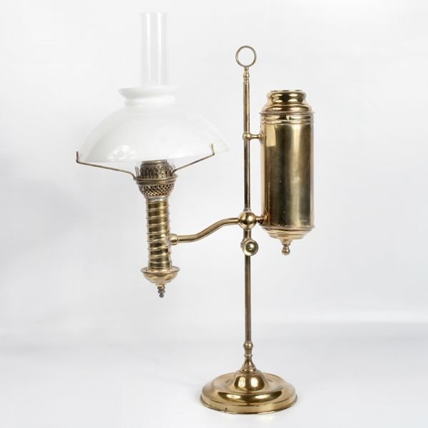 19th century student lamp, solid brass, lift out