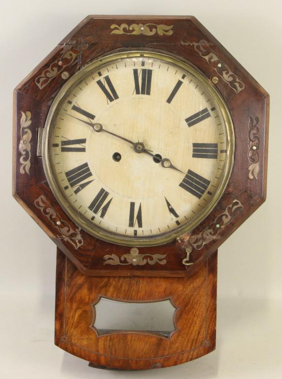 19th CENTURY WALNUT INLAID WALL CLOCK