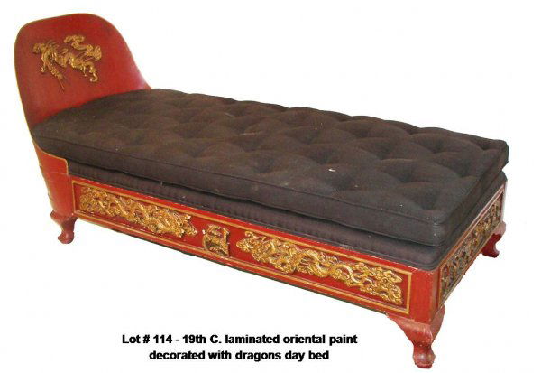 19th C.oriental laminated paint decorated day bed
