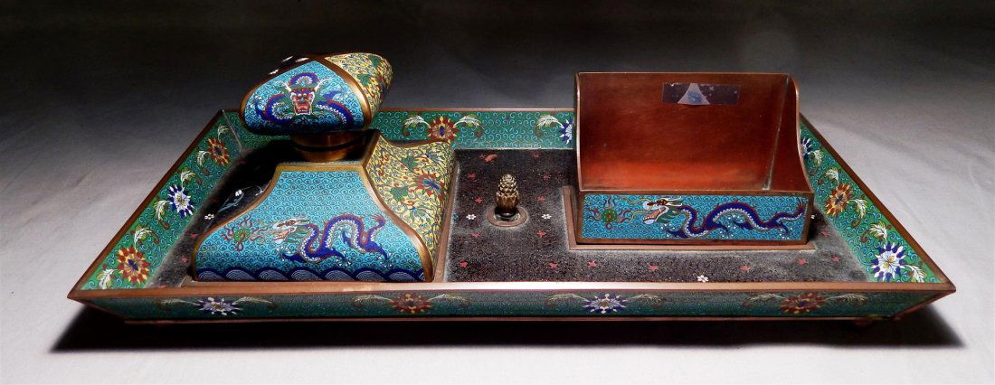 Chinese Cloisonne Smoking Set, Box 3 x 4 5/8 x 3 3/8" (1 foot nibbled).15 hrs LeftAn 18th-century cloisonne incense burner inlaid with Hetian jade296 Lots AwayA set of purple cloisonné enamel cloisonné Kowloon offering tableMar 07, 202619th Century Chinese Gilt Lacquer Sewing Table3 days LeftA Huge Cloisonne Inlaid Gems Figure Pattern Table ScreenMar 05, 2026An 18th-century cloisonne incense burner120 Lots AwayQing Dynasty copper cloisonn é lid box4 days Left18-19th C. Chinese Cloisonne Three-Foot CenserFeb 28, 2026Qing Dynasty Gilt Bronze Cloisonné Incense HolderFeb 17, 2026A Rare Cloisonne Inlaid Gems Figure Pattern Table Screen,with poemFeb 28, 2026An Exquisite Cloisonne Eight Treasures and Auspicious Cloud and Dragon Pattern BoxFeb 28, 2026A 18th-century screen with cloisonne inlaid with Tianhuang stone24 Lots AwayChinese Cloisonne Enamel Gilt Bronze Cabinet Vase or Censer1 day LeftA Chinese CloisonnĂ© Enamel Qalamdan Pen Box, Made for the Islamic Market, 19th CenturyFeb 17, 2026A Chinese Cloisonne and Brass Box5 days LeftAn Antique/Vintage Chinese Cloisonne Round BoxFeb 20, 2026