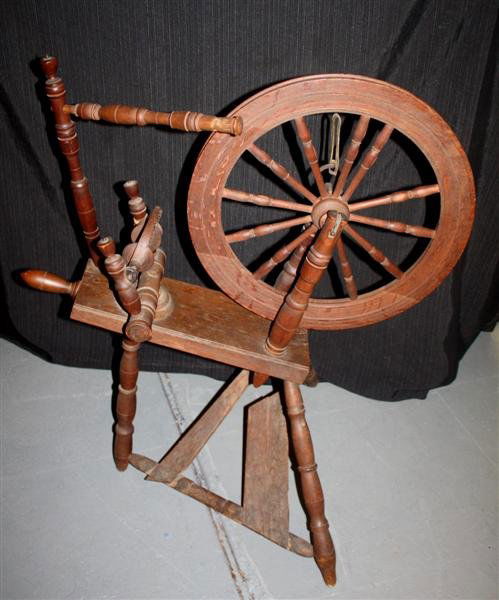 Sold19th C. Sailor's Flax WheelUnusual 19th C. American Sailors wooden flax spinning wheel with dentin fittings. 26: (H)See Sold Price