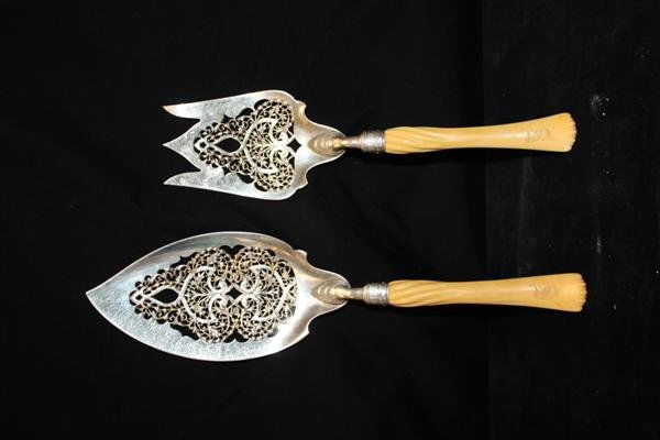 19thC Gorham Ivory & Sterling Fish Servers