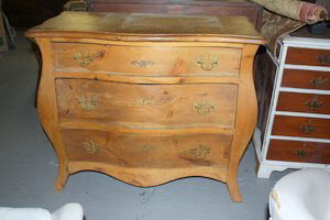 SoldITALIAN BOMBE' CHESTTWO DRAWERS WITH PAPERED INTERIORS CARVING OF LEGS 32 1/2" X 40" X 17 1/2" Terms: Please read Carefully before bidding. This is a Two-Part Estate Sale. Pick-up for these sales will be Tuesday NovemberSee Sold Price