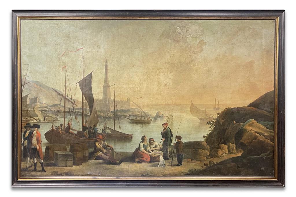 19THC. MURAL "COLONIAL SEAPORT" FROM ROCKEFELLER