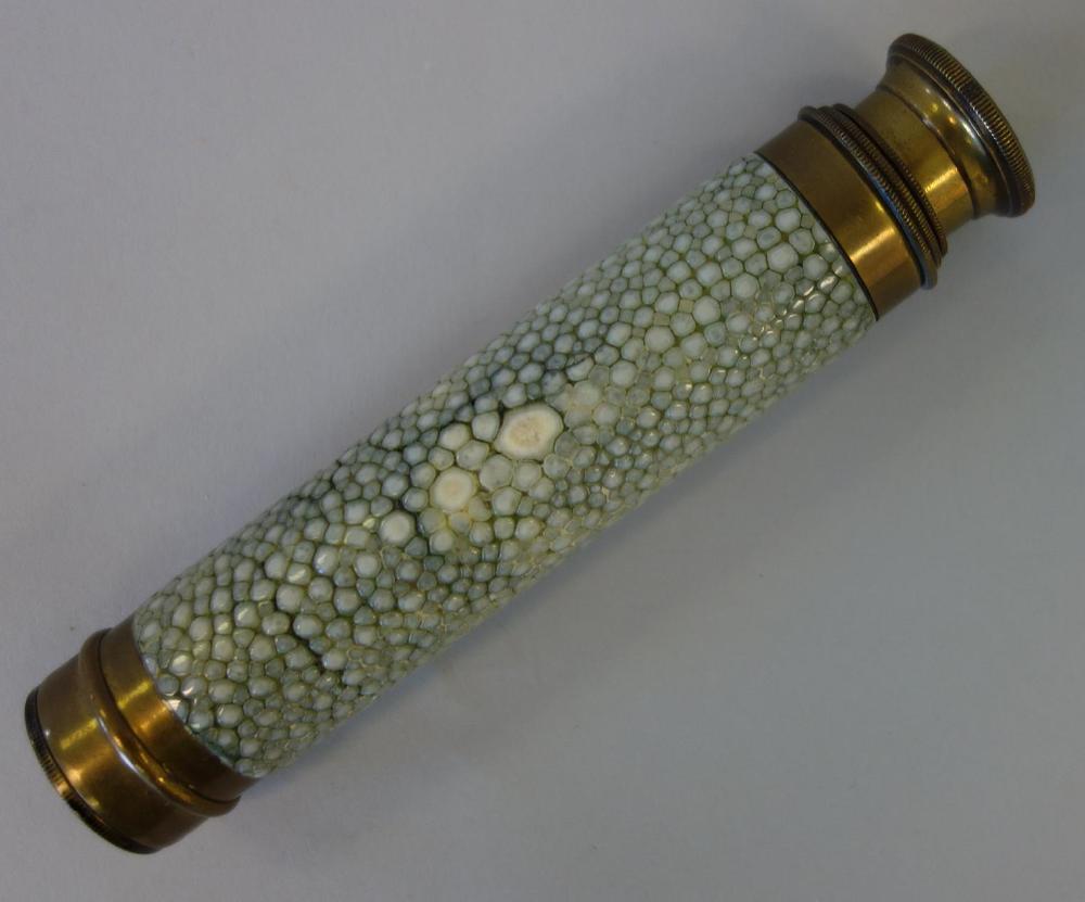 19thc Shagreen & Brass Three-Draw Telescope
