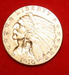 Uncertified 1910 $2.50 Gold Indian AU Slider