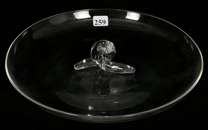 2 1/2" X 10" SIGNED STEUBEN CLEAR ROUND TRAY WITH