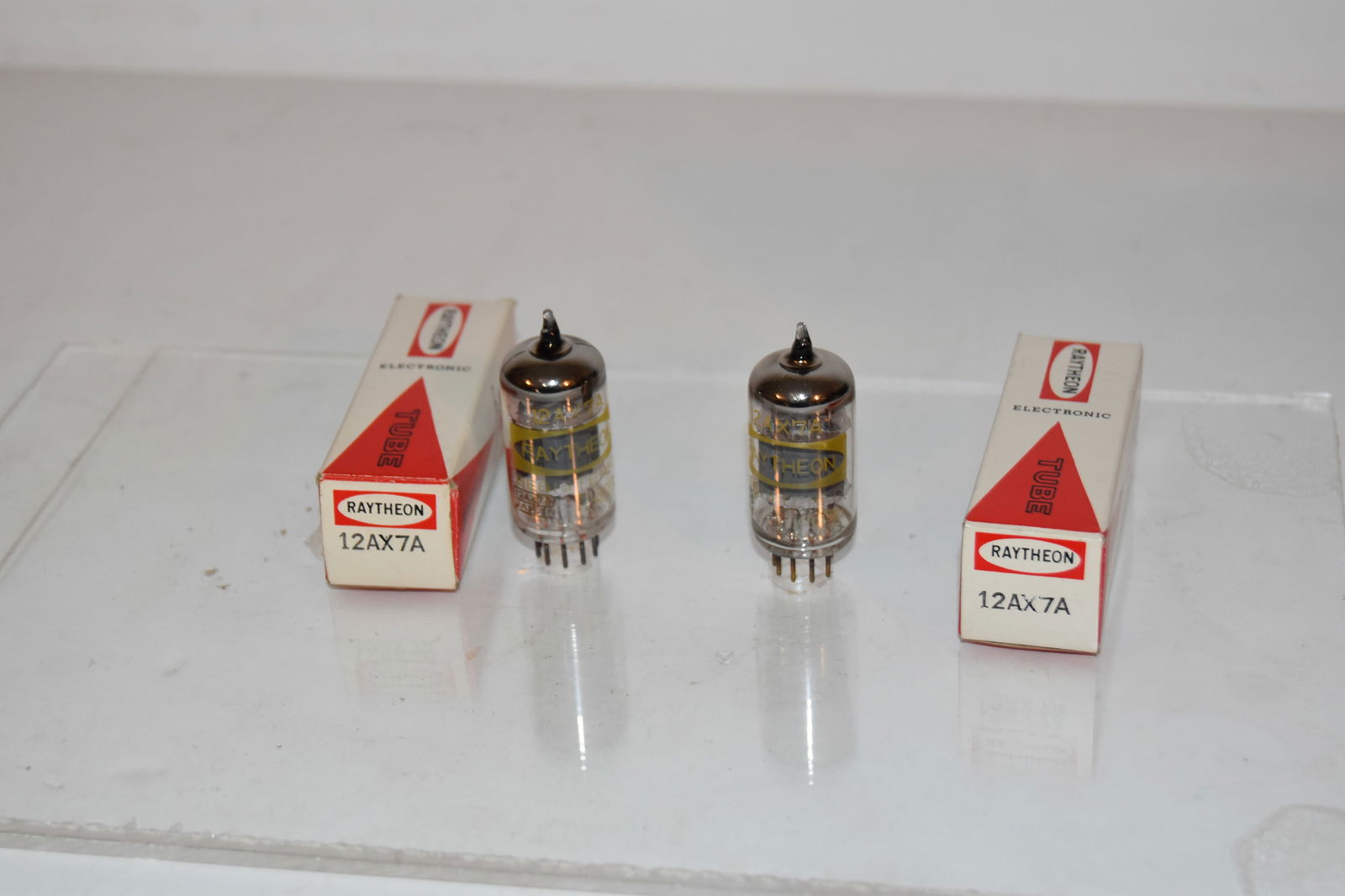 Sold2 12AX7A Raytheon Tubes Matched Pair2 12AX7A Raytheon Tubes Matched Pair Please view all photos as they are part of the description and condition of this Item, Feel free to contact me with questions or picture requests! Used Item AS ISSee Sold Price
