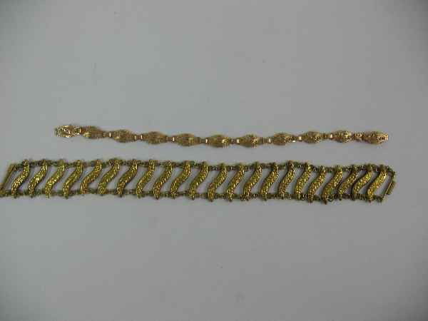 2 14K gold bracelets. One fancy rope and the other a heavy bead and ribbon design. Each marked 14K.Tremont Auctions4.6(313)$500(2 bids)7 days Left