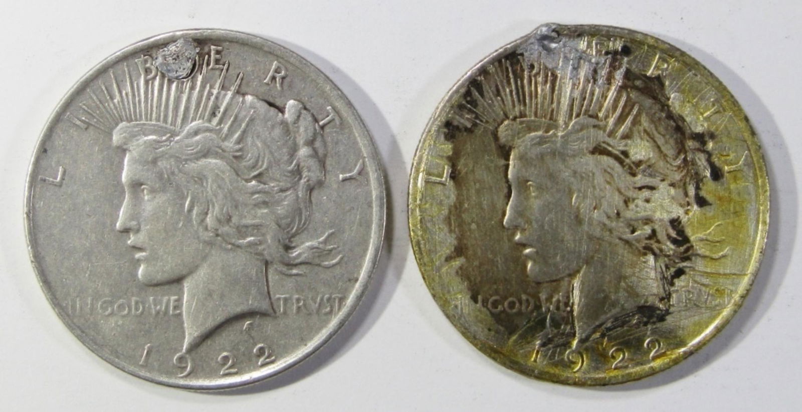 (2) 1922 PEACE DOLLARS- HOLED & FILLED