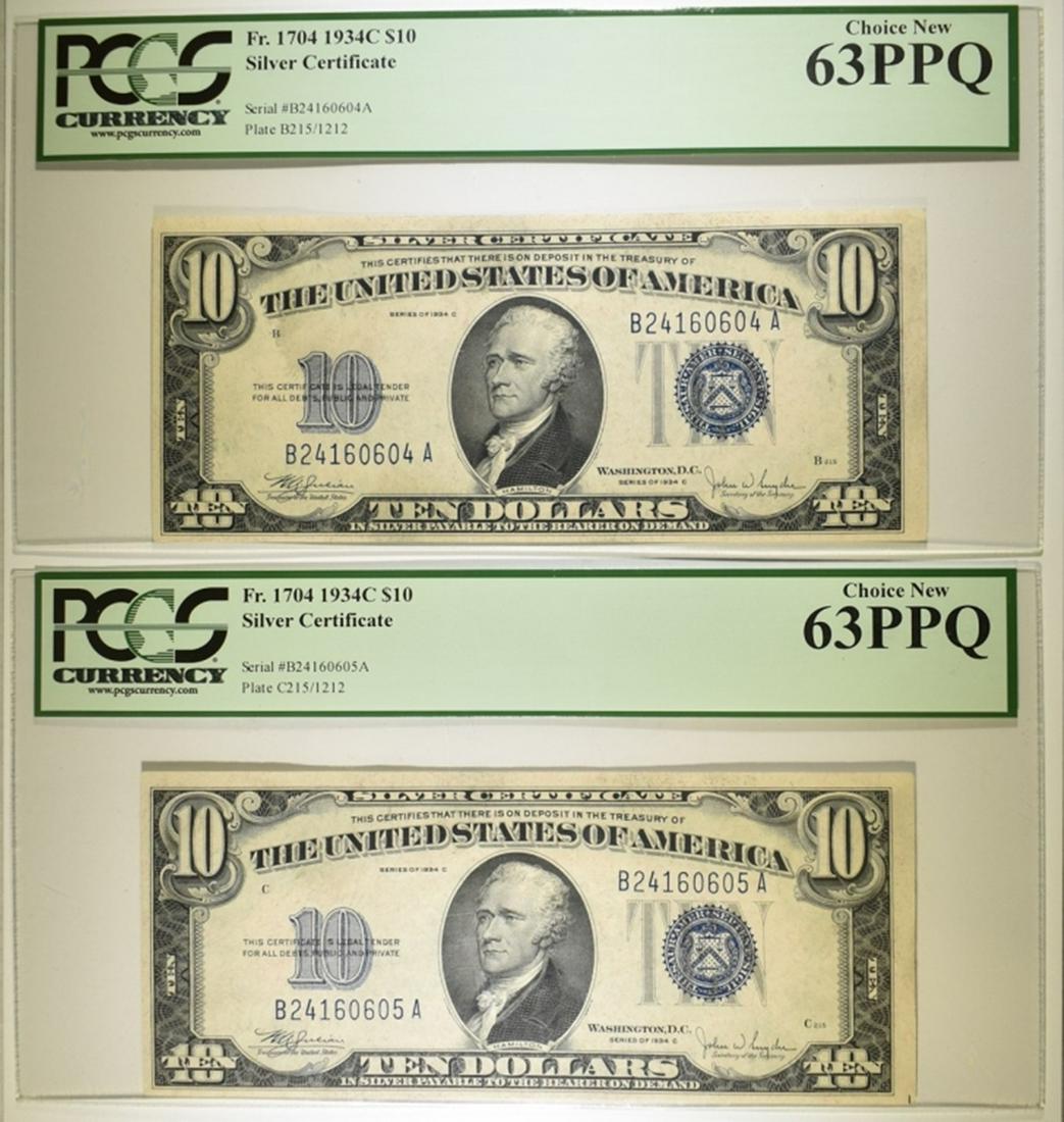 2 1934-C $10 SILVER CERTIFICATE PCGS 63 PPQ