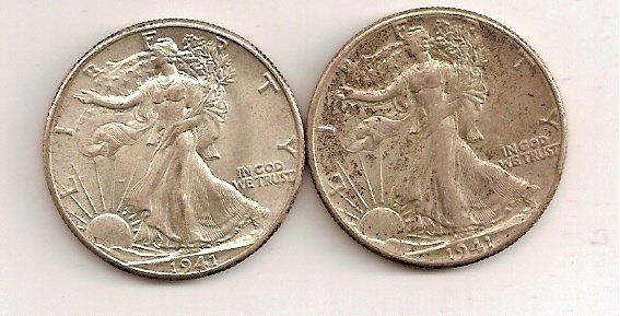 2- 1941 Walking Half Dollars BU