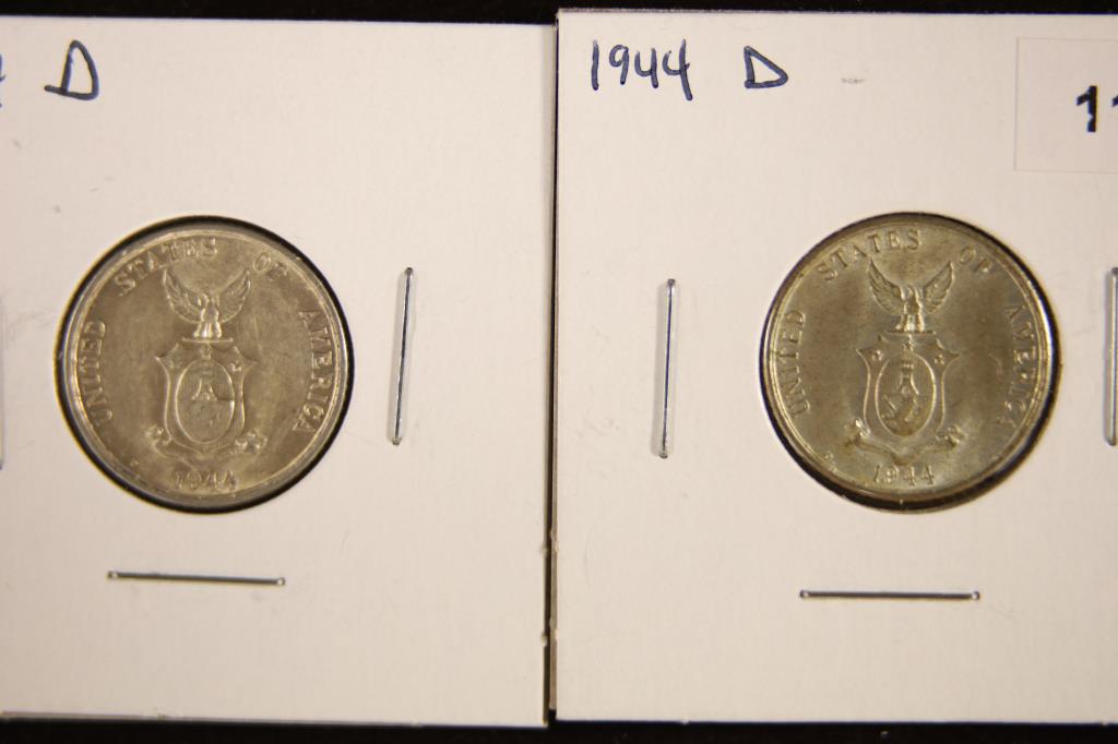 2-1944-D US PHILIPPINES SILVER 20 CENTAVO UNC